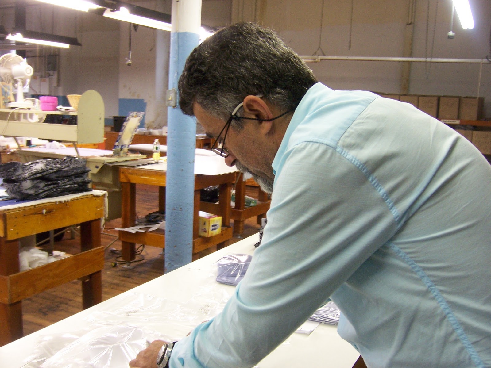 This is John in front of one of their super long cutting tables. He’s been a pattern maker with this factory for 40 years.