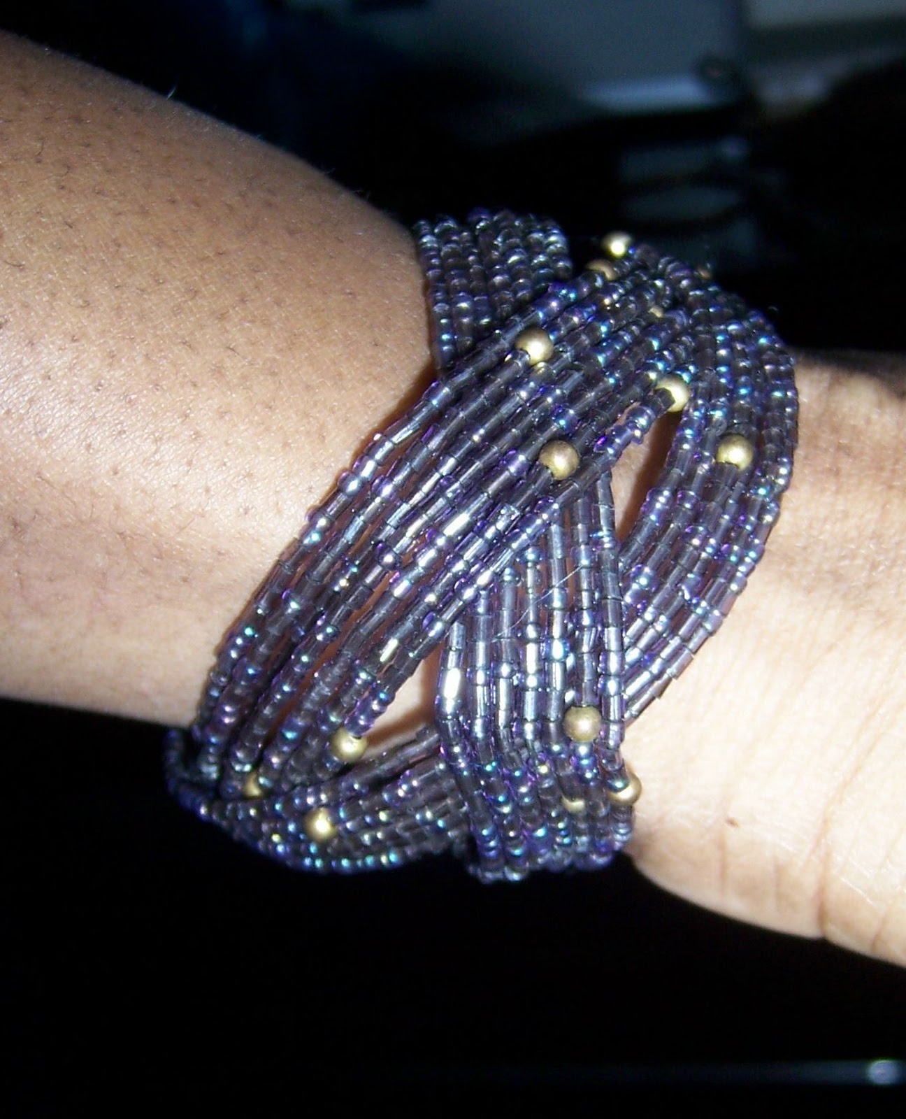 | Purple, twisty beaded bracelet. |